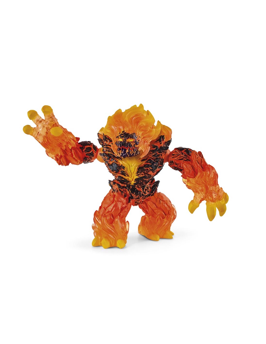 El demonio de lava de Schleich® Eldrador® Creatures irradia tanto calor que (casi) nadie se atreve a acercarse a él. Y es que todos aquellos que lo atacan saben que: todo aquello que el ardiente coloso agarra arde en llamas. Su enorme cuerpo está hecho de piedra de lava fundida y en su cabeza se alborota una melena llameante. A pesar de su apariencia maciza, el demonio de lava es extremadamente móvil, y esto lo convierte en un adversario demoníaco: como puede girar su torso completamente, no se le escapa ni el más mínimo movimiento. Aquel que se le acerque será descubierto de inmediato. Con sus brazos móviles agarra a sus enemigos en un abrir y cerrar de ojos y los sacude con fuerza. Además, el demonio de lava puede mover su mandíbula: en el momento en que abre su boca, de la que brotan chispas, sale un aliento de fuego llameante —¡no solo huele a piedra quemada, sino que también es tan ardiente que resulta insoportable!