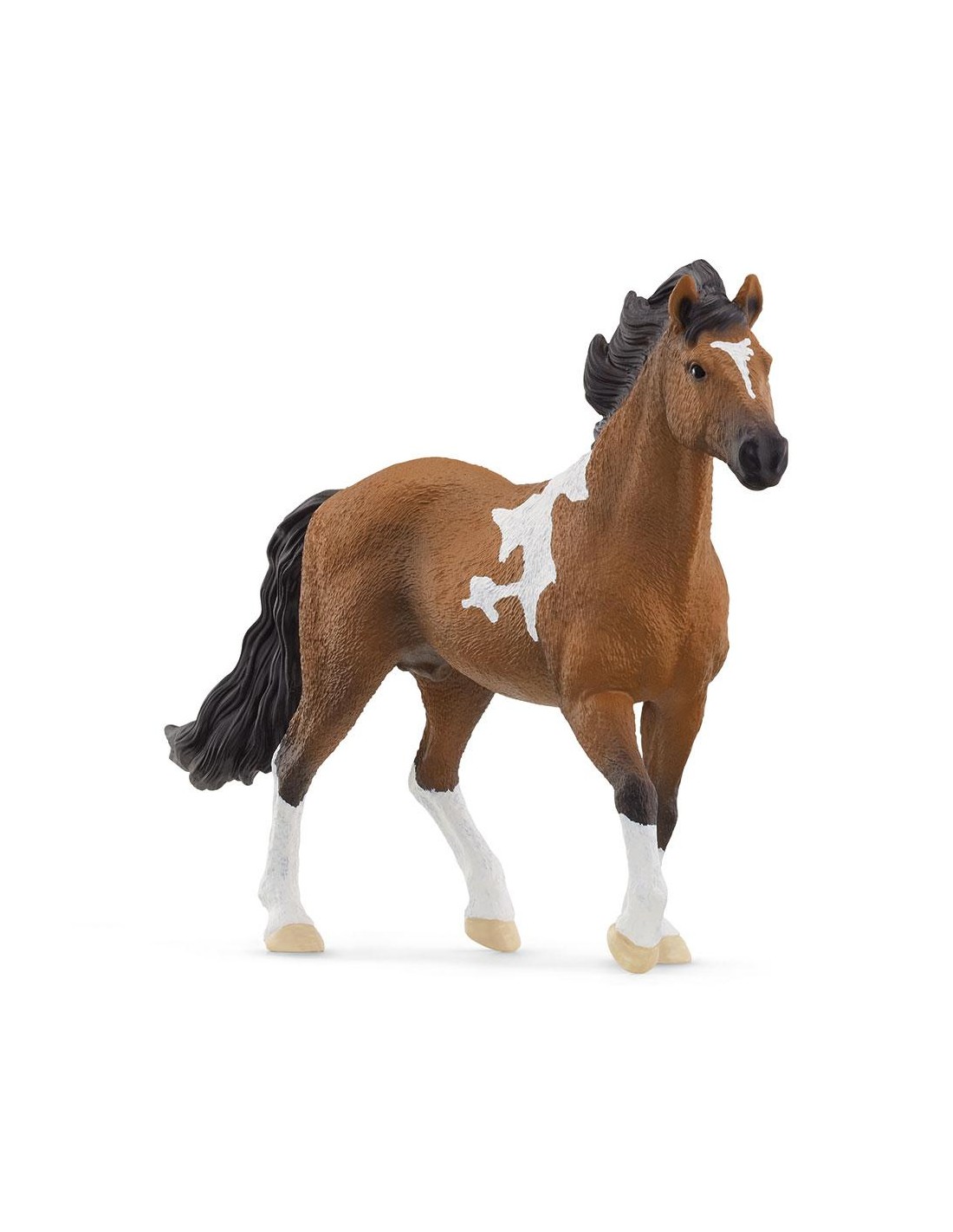 El semental Mangalarga Marchador está listo: ¿Quién lo sacará del potrero y lo llevará a dar un paseo? Infla las fosas nasales y resopla con anticipación. Siempre le gusta estar en la carretera. El hecho de que sea bastante manejable y no demasiado grande es muy apreciado por los ciclistas. Originalmente, el Mangalarga Marchador proviene de Brasil. Debe su sufijo de nombre Marchador a su suave andar "Marcha". Sin embargo, con su pelaje marrón y blanco manchado, también es un caballo sorprendentemente bonito.