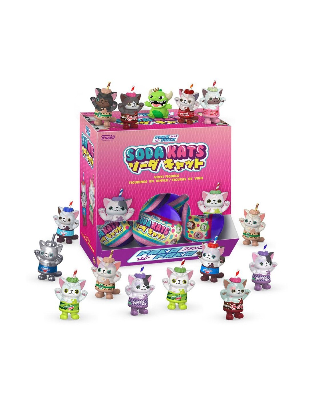 ¡Bienvenido al mundo burbujeante de Soda Kats! Colecciona lindos gatos como Dr. Purr Purr y Meowntain Mew. Las probabilidades varían según el personaje, entonces, ¿cuál de los 15 posibles coleccionables de cápsulas obtendrás? El coleccionable mide aproximadamente 2 pulgadas de alto como máximo, varía según la figura.